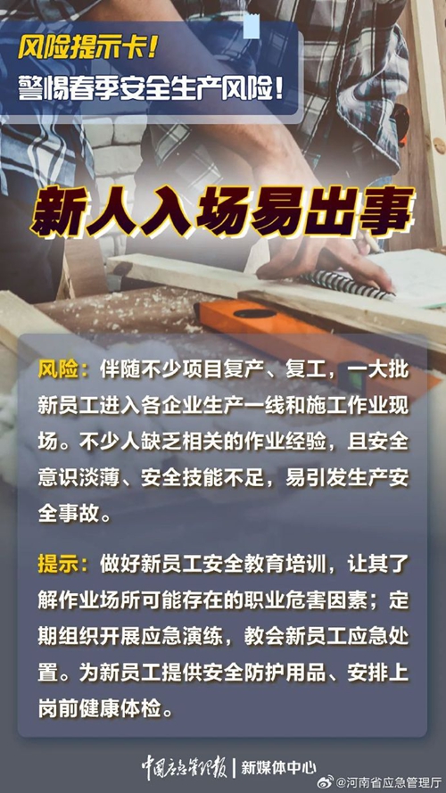 春季天氣多變,各行業復工復產步入正軌,生產節奏不斷加快的同時,應結合春季安全生產特點及時落實各項安全防范措施 ???。
